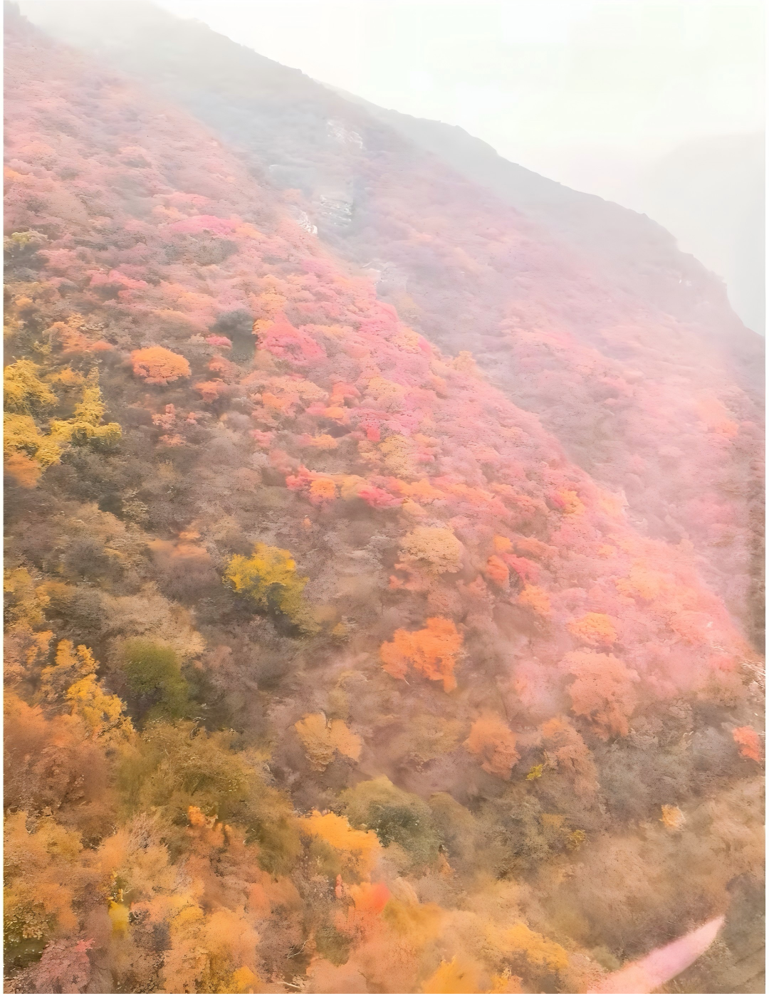 作品介绍:坡峰岭不像春日的绿,那般羞涩稚嫩;也不像夏日的绿,那般单调深沉。坡峰岭的秋,是色彩的"暴发户"。在此刻毫无保留地绽放,无数种颜色交织在一起,泼洒在连绵起伏的山峦之上,宛如一幅巨大的天然油画,浓墨重彩到让人屏息。