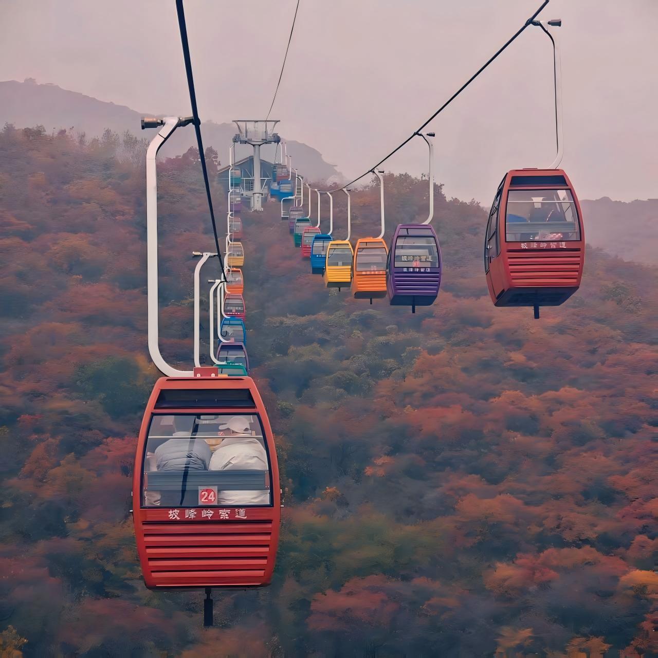 作品介绍:高空缆车缓缓上升,仿佛将我们带入了云端,世界在脚下渐渐变得渺小,风轻轻拂过,带走了所有的喧嚣,只留下宁静与自由。